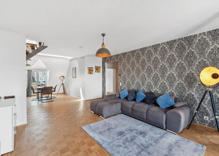 デュッセルドルフでの休暇を楽しむには、フォルクスガルテンから自動車で10分で、カーマラシュピーレ劇場から2.5kmの広々とした102m²のHigh Class Maisonette Apartment 2 Bed 2 Bathroom デュッセルドルフがあります。